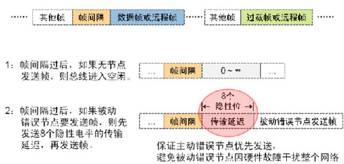 幀間隔用于將數據幀或遠程幀和他們之間的幀分離開, 但過載幀和錯誤幀前門不會插入幀間隔。