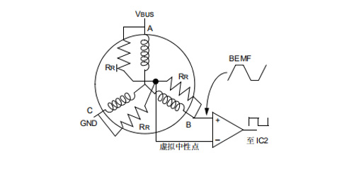 BEMF電壓與直流母線電壓的一半進行比較該方法是在假定BEMF電壓等VDC/2時發生過零事件的情況下,利用比較器將 BEMF 電壓與直流母線電壓的一半(VBUS/2)進行比較。圖下圖顯示了實現該方法所用的電路。